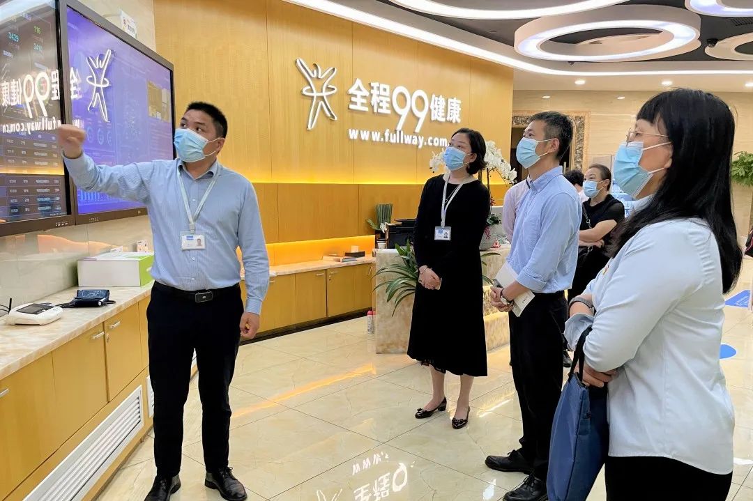 與會(huì)人員實(shí)地參觀了全程玖玖健康門診部、互聯(lián)網(wǎng)醫(yī)院及智慧養(yǎng)老平臺(tái),包括健康管理中心、運(yùn)營(yíng)監(jiān)控中心、智慧養(yǎng)老體驗(yàn)中心等功能區(qū)域和配套設(shè)施,并聽(tīng)取了全程玖玖健康探索居家智慧養(yǎng)老服務(wù)模式,互聯(lián)網(wǎng)+醫(yī)養(yǎng)結(jié)合數(shù)字化轉(zhuǎn)型方面取得的運(yùn)營(yíng)成效。